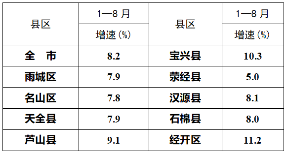 2025年1—8月各县(区)规模以上工业增加值增速情况